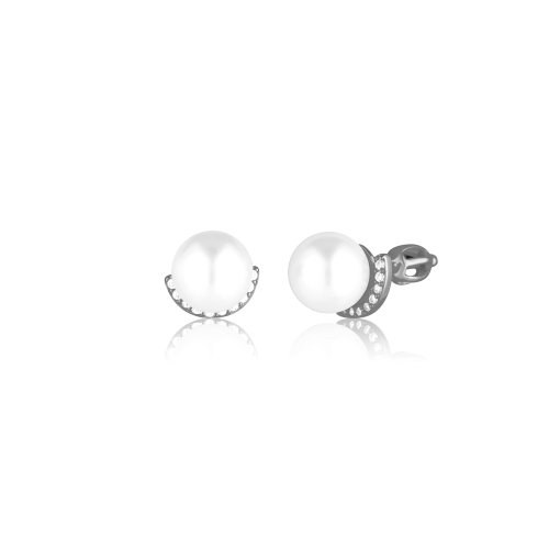 VLASTNOSTI Typ náušnic: pecky Materiál: rhodiované stříbro Barva: stříbrná Barva: bílá Barva: čirá Ryzost: Ag 925/1000 Typ zapínání náušnic: šroubek Osazení: perla Osazení: zirkon Povrchová úprava: bez povrchové úpravy šířka: 9 mm výška: 8 mm hloubka: 20 mm