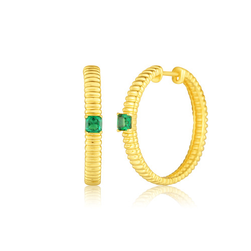 VLASTNOSTI Typ náušnic: kruhy Materiál: rhodiované stříbro Barva: žluté zlacení Barva: zelená Ryzost: Ag 925/1000 Typ zapínání náušnic: francouzské zapínání Osazení: zirkon Povrchová úprava: IPGold šířka: 4 mm výška: 29 mm hloubka: 32 mm