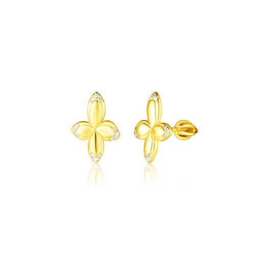 VLASTNOSTI Typ náušnic: pecky Materiál: rhodiované stříbro Barva: čirá Barva: žluté zlacení Ryzost: Ag 925/1000 Typ zapínání náušnic: šroubek Motiv: květina Osazení: zirkon Povrchová úprava: IPGold šířka: 10 mm výška: 15 mm hloubka: 14 mm