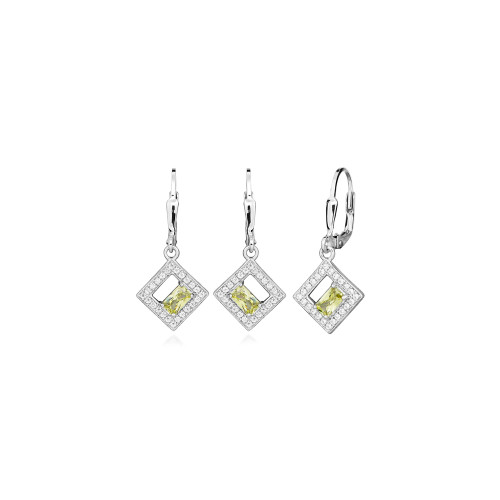 VLASTNOSTI Typ náušnic: visací Materiál: rhodiované stříbro Barva: zelená Barva: stříbrná Barva: čirá Ryzost: Ag 925/1000 Typ zapínání náušnic: klapka Osazení: zirkon Povrchová úprava: bez povrchové úpravy šířka: 13 mm výška: 28 mm hloubka: 10 mm