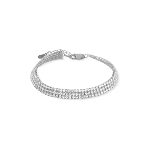 VLASTNOSTI Typ náramku: řetízkové Délka náramku: 18 cm Materiál: rhodiované stříbro Barva: čirá Barva: stříbrná Ryzost: Ag 925/1000 Osazení: zirkon Povrchová úprava: bez povrchové úpravy