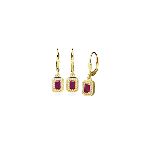 VLASTNOSTI Typ náušnic: visací Materiál: rhodiované stříbro Barva: čirá Barva: žluté zlacení Barva: červená Ryzost: Ag 925/1000 Typ zapínání náušnic: klapka Osazení: zirkon Povrchová úprava: IPGold šířka: 6.5 mm výška: 24 mm hloubka: 12 mm