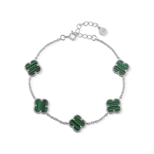 VLASTNOSTI Typ náramku: řetízkové Délka náramku: 18 cm Materiál: rhodiované stříbro Barva: stříbrná Barva: zelená Ryzost: Ag 925/1000 Osazení: smalt Povrchová úprava: bez povrchové úpravy