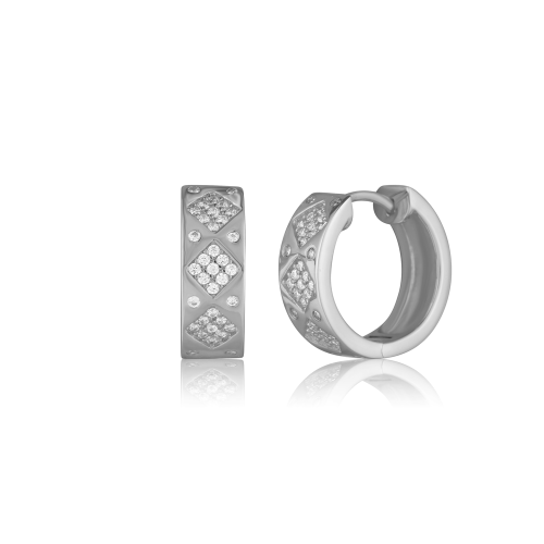 VLASTNOSTI Typ náušnic: kruhy Materiál: rhodiované stříbro Barva: čirá Barva: stříbrná Ryzost: Ag 925/1000 Typ zapínání náušnic: kloub - kruhy Osazení: zirkon Povrchová úprava: bez povrchové úpravy šířka: 6 mm výška: 16 mm hloubka: 17 mm