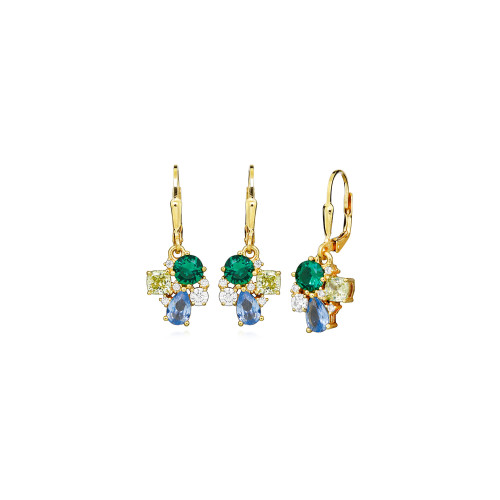 VLASTNOSTI Typ náušnic: visací Barva: žluté zlacení Barva: čirá Barva: vícebarevná Materiál: rhodiované stříbro Ryzost: Ag 925/1000 Typ zapínání náušnic: klapka Osazení: zirkon Povrchová úprava: IPGold šířka: 11 mm výška: 27 mm hloubka: 10 mm