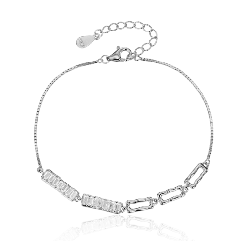VLASTNOSTI Typ náramku: řetízkové Délka náramku: 18 cm Barva: čirá Barva: stříbrná Materiál: rhodiované stříbro Ryzost: Ag 925/1000 Osazení: zirkon Povrchová úprava: bez povrchové úpravy