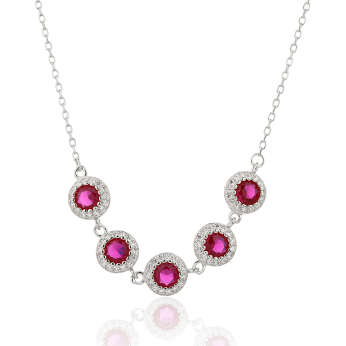 VLASTNOSTI Materiál: rhodiované stříbro Délka řetízku: 45 cm Barva: čirá Barva: červená Barva: stříbrná Ryzost: Ag 925/1000 Osazení: zirkon Povrchová úprava: bez povrchové úpravy