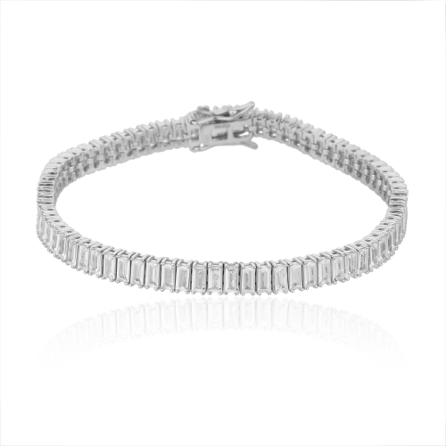 VLASTNOSTI Typ náramku: řetízkové Délka náramku: 18 cm Materiál: rhodiované stříbro Barva: stříbrná Barva: čirá Ryzost: Ag 925/1000 Osazení: zirkon Povrchová úprava: bez povrchové úpravy
