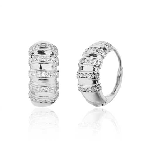 VLASTNOSTI Typ náušnic: klasické Barva: stříbrná Barva: čirá Materiál: rhodiované stříbro Ryzost: Ag 925/1000 Typ zapínání náušnic: klapka Osazení: zirkon Povrchová úprava: bez povrchové úpravy šířka: 7 mm výška: 16 mm hloubka: 14 mm