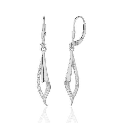 VLASTNOSTI Typ náušnic: visací Materiál: rhodiované stříbro Barva: stříbrná Barva: čirá Ryzost: Ag 925/1000 Typ zapínání náušnic: klapka Osazení: zirkon Povrchová úprava: bez povrchové úpravy šířka: 7 mm výška: 40 mm hloubka: 10 mm