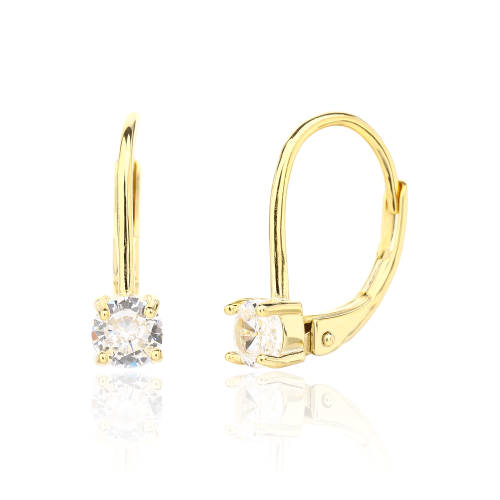 VLASTNOSTI Typ náušnic: klasické Materiál: rhodiované stříbro Barva: žluté zlacení Barva: čirá Ryzost: Ag 925/1000 Typ zapínání náušnic: klapka Osazení: zirkon Povrchová úprava: IPGold šířka: 4 mm výška: 12 mm hloubka: 14 mm
