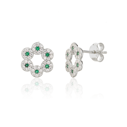 VLASTNOSTI Typ náušnic: pecky Materiál: rhodiované stříbro Barva: čirá Barva: stříbrná Barva: zelená Ryzost: Ag 925/1000 Typ zapínání náušnic: puzeta Motiv: květina Osazení: zirkon Povrchová úprava: bez povrchové úpravy šířka: 10 mm výška: 10 mm hloubka: 12 mm