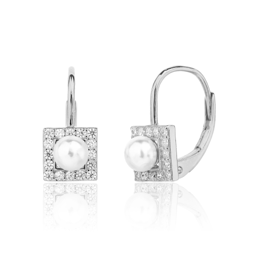 VLASTNOSTI Typ náušnic: klasické Barva: stříbrná Barva: čirá Barva: bílá Materiál: rhodiované stříbro Ryzost: Ag 925/1000 Typ zapínání náušnic: klapka Osazení: zirkon Osazení: perla Povrchová úprava: bez povrchové úpravy šířka: 7 mm výška: 16 mm hloubka: 13 mm