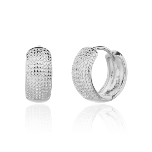 VLASTNOSTI Typ náušnic: klasické Barva: stříbrná Materiál: rhodiované stříbro Ryzost: Ag 925/1000 Typ zapínání náušnic: kloub - kruhy Osazení: bez kamene Povrchová úprava: bez povrchové úpravy šířka: 6 mm výška: 13 mm hloubka: 13 mm