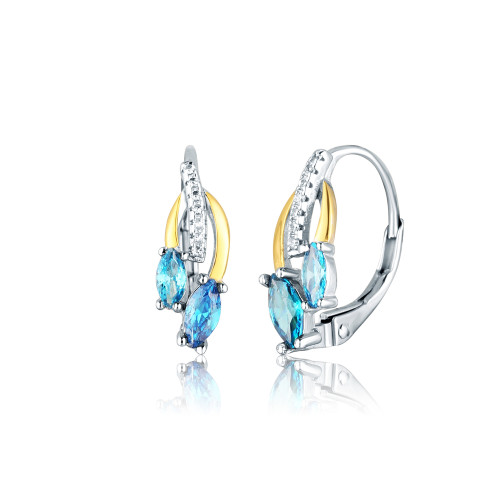 VLASTNOSTI Typ náušnic: klasické Materiál: rhodiované stříbro Barva: stříbrná Barva: žluté zlacení Barva: čirá Barva: modrá Ryzost: Ag 925/1000 Typ zapínání náušnic: klapka Osazení: zirkon Povrchová úprava: IPGold šířka: 6 mm výška: 18 mm hloubka: 13 mm