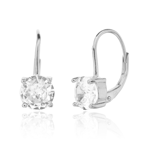VLASTNOSTI Typ náušnic: klasické Materiál: rhodiované stříbro Barva: čirá Barva: stříbrná Ryzost: Ag 925/1000 Typ zapínání náušnic: klapka Osazení: zirkon Povrchová úprava: bez povrchové úpravy šířka: 7 mm výška: 15 mm hloubka: 15 mm