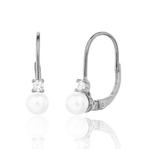 VLASTNOSTI Typ náušnic: klasické Materiál: rhodiované stříbro Barva: bílá Barva: čirá Barva: stříbrná Ryzost: Ag 925/1000 Typ zapínání náušnic: klapka Osazení: perla Osazení: zirkon Povrchová úprava: bez povrchové úpravy šířka: 5 mm výška: 19 mm hloubka: 15 mm