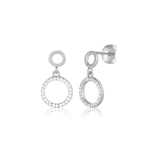 VLASTNOSTI Typ náušnic: visací Materiál: rhodiované stříbro Barva: čirá Barva: stříbrná Ryzost: Ag 925/1000 Typ zapínání náušnic: puzeta Osazení: zirkon Povrchová úprava: bez povrchové úpravy šířka: 10.5 mm výška: 19 mm hloubka: 12 mm