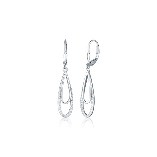 VLASTNOSTI Typ náušnic: visací Materiál: rhodiované stříbro Barva: stříbrná Barva: čirá Ryzost: Ag 925/1000 Typ zapínání náušnic: klapka Osazení: zirkon Povrchová úprava: bez povrchové úpravy šířka: 8 mm výška: 40 mm hloubka: 9 mm