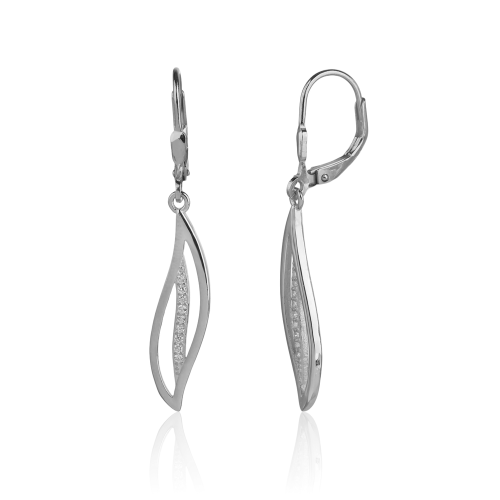 VLASTNOSTI Typ náušnic: visací Barva: stříbrná Barva: čirá Materiál: rhodiované stříbro Ryzost: Ag 925/1000 Typ zapínání náušnic: klapka Osazení: zirkon Povrchová úprava: bez povrchové úpravy šířka: 7 mm výška: 41 mm hloubka: 11 mm