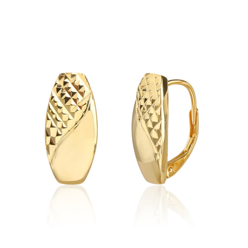 VLASTNOSTI Typ náušnic: klasické Barva: žluté zlacení Materiál: rhodiované stříbro Ryzost: Ag 925/1000 Typ zapínání náušnic: klapka Osazení: bez kamene Povrchová úprava: IPGold šířka: 8 mm výška: 18 mm hloubka: 11 mm