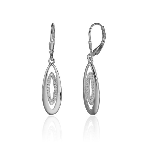 VLASTNOSTI Typ náušnic: visací Materiál: rhodiované stříbro Barva: stříbrná Barva: čirá Ryzost: Ag 925/1000 Typ zapínání náušnic: klapka Osazení: zirkon Povrchová úprava: bez povrchové úpravy šířka: 9 mm výška: 39 mm hloubka: 11 mm