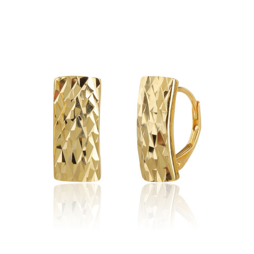 VLASTNOSTI Typ náušnic: klasické Barva: žluté zlacení Materiál: rhodiované stříbro Ryzost: Ag 925/1000 Typ zapínání náušnic: klapka Osazení: bez kamene Povrchová úprava: IPGold šířka: 8 mm výška: 17 mm hloubka: 10 mm