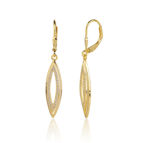VLASTNOSTI Typ náušnic: visací Materiál: rhodiované stříbro Barva: čirá Barva: žluté zlacení Ryzost: Ag 925/1000 Typ zapínání náušnic: klapka Osazení: zirkon Povrchová úprava: IPGold šířka: 7 mm výška: 41 mm hloubka: 11 mm