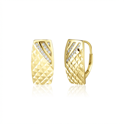 VLASTNOSTI Typ náušnic: klasické Materiál: rhodiované stříbro Barva: žluté zlacení Barva: čirá Ryzost: Ag 925/1000 Typ zapínání náušnic: klapka Motiv: elegantní Osazení: zirkon Povrchová úprava: IPGold šířka: 9 mm výška: 17 mm hloubka: 12 mm