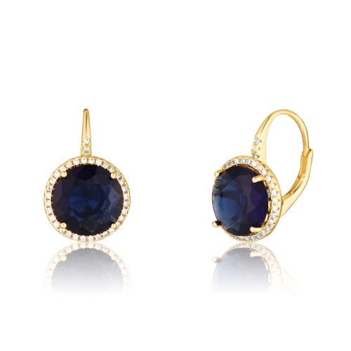 VLASTNOSTI Typ náušnic: klasické Barva: žluté zlacení Barva: čirá Barva: modrá Materiál: rhodiované stříbro Ryzost: Ag 925/1000 Typ zapínání náušnic: klapka Osazení: zirkon Povrchová úprava: IPGold šířka: 12 mm výška: 20 mm hloubka: 17 mm