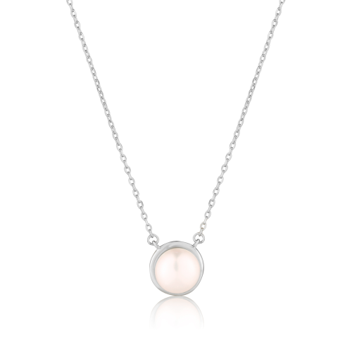 VLASTNOSTI Materiál: rhodiované stříbro Délka řetízku: 45 cm Barva: stříbrná Barva: bílá Ryzost: Ag 925/1000 Osazení: perla Povrchová úprava: bez povrchové úpravy