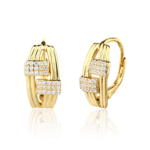 VLASTNOSTI Typ náušnic: klasické Materiál: rhodiované stříbro Barva: žluté zlacení Barva: čirá Ryzost: Ag 925/1000 Typ zapínání náušnic: klapka Osazení: zirkon Povrchová úprava: IPGold šířka: 9 mm výška: 17 mm hloubka: 11 mm