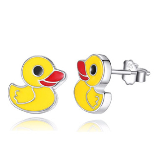 Dětské stříbrné náušnice kačenky žluté