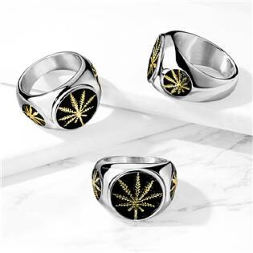 Pánský ocelový prsten lit marihuany