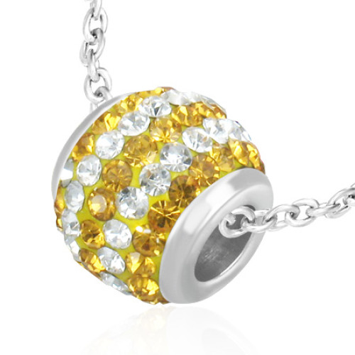 Osázen Swarovski krystaly žluté a čiré barvy.