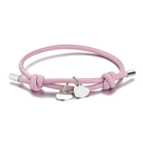 Tento krásně zpracovaný růžový náramek je vyrobený z kvalitní systetické kůže a je doplněný dvěma nerezovými přívěsky ve tvaru srdíček s vysoceleštěným povrchem.