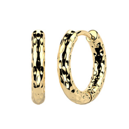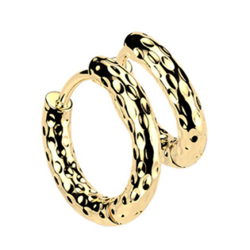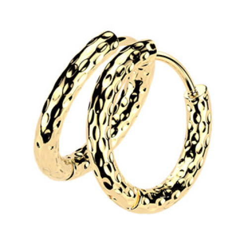 Pozlacené ocelové náušnice ve tvaru kruhů zdobených vymačkávaným strukturovaným dekorem