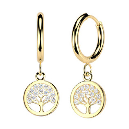 Visací ocelové náušnice strom života dekorovaný kubickými zirkony