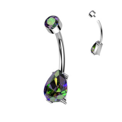 Titanový piercing do pupíku s kamenem ve tvaru kapky
