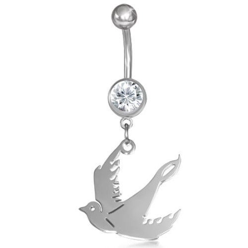 Piercing banánek do pupíku. S přívěskem vlaštovky.