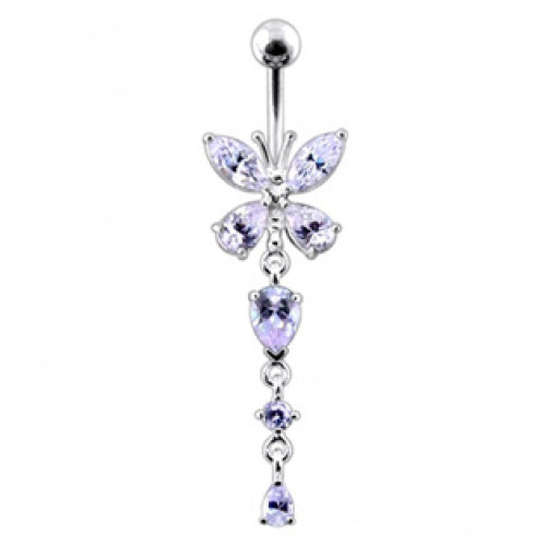 Stříbrný piercing do pupíku - motýlek se světle fialovými zirkony