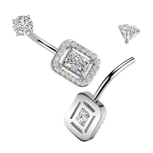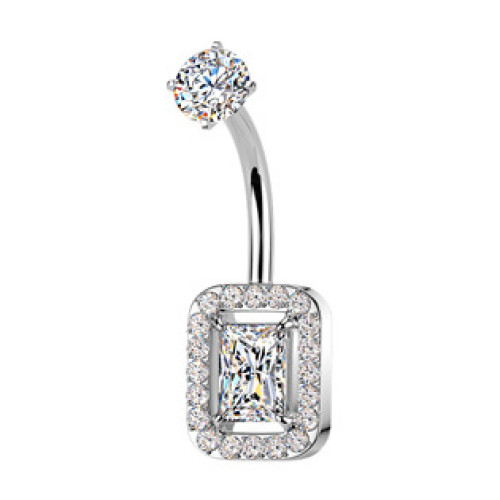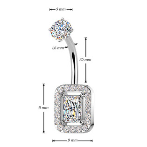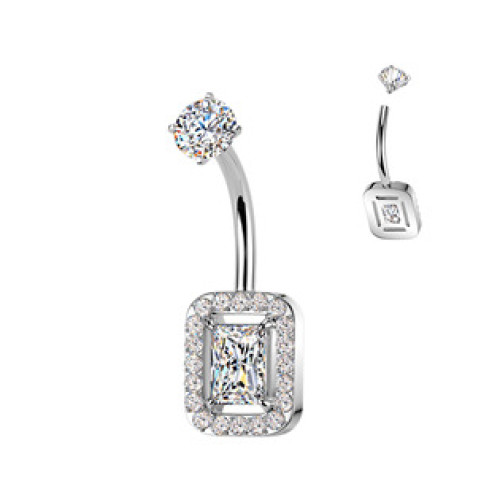 Piercing do pupíku s ozdobnou částí ve tvaru obdélníku dekorovaného zirkony