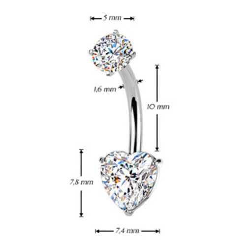 Piercing do pupíku s ozdobnou částí ve tvaru srdíčka