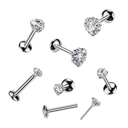 Titanový piercing do brady s moissanity