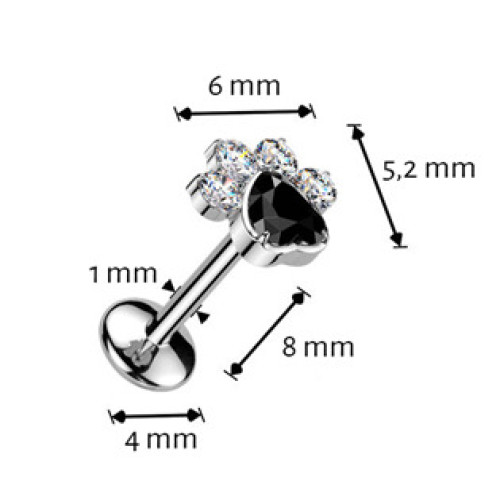 Piercing do brady tlapka - PUSH IN labreta TITAN