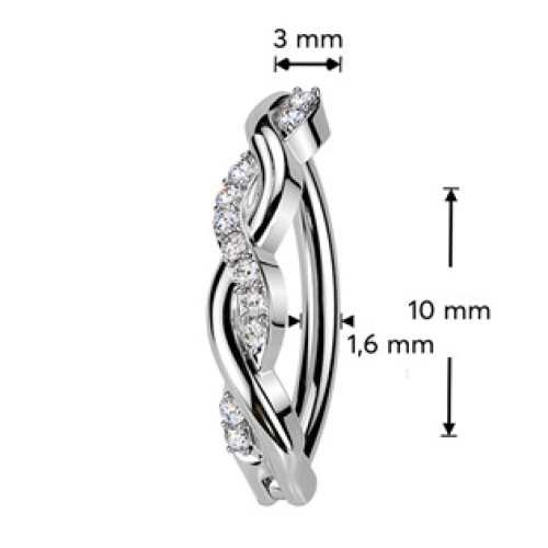 Tyčka tohoto piercingu je vyrobena z jakostní nerezové oceli a ozdobný štít je z nezávadné rhodiované bižuterie