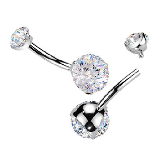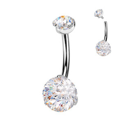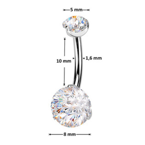 Titanový piercing do pupíku dekorovaný překrásně broušenými zirkony čiré barvy