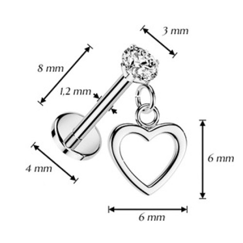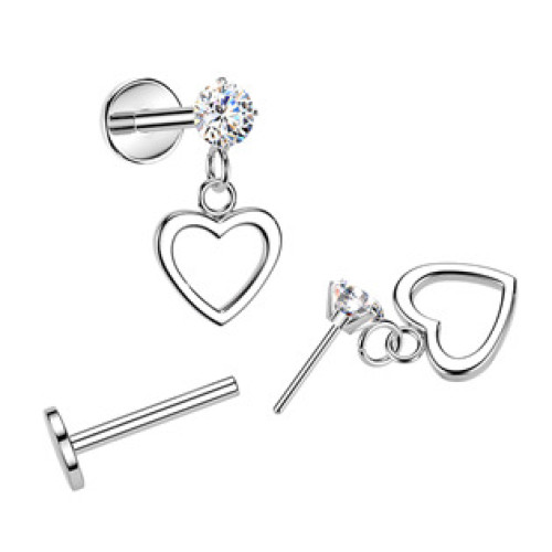 Piercing do ucha - labreta se zavěšeným srdíčkem