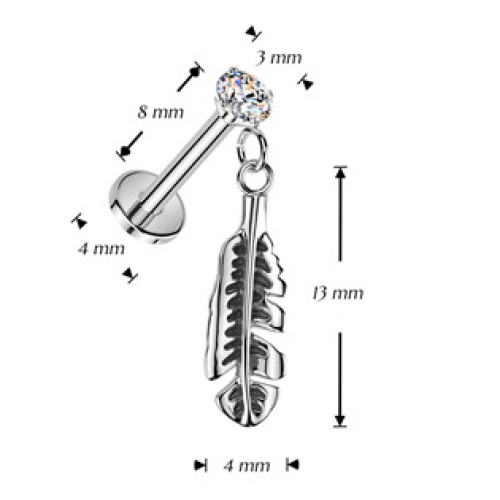 Labreta je vyrobena z kvalitní chirurgické oceli 316L a ozdobná visací část z nezávadné rhodiované bižuterie