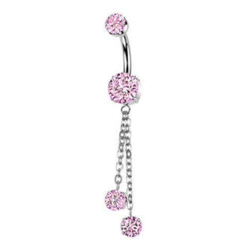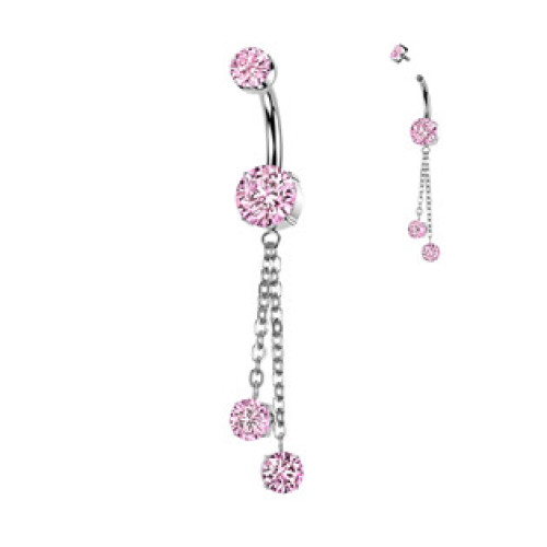 Titanový piercing do pupíku osazený překrásně třpytivými zirkony růžové barvy